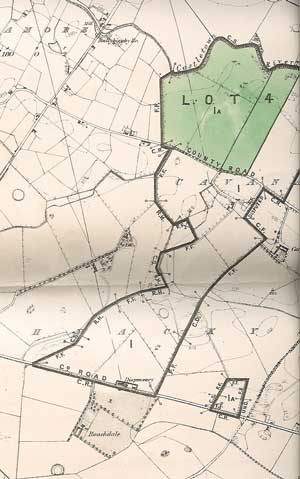 TENURE LOT 2 The lands of Carnbeg, comprised in this Lot, were held under lease, dated 25th of August, 1868, made between the Right Honorable Robert Earl of Roden[15] of the one part, and Thomas BRADFORD[16] of the other part, for the term of 31 years from first November, 1865. The premises are described in the said lease as all that and those that part of the lands of Carnbeg, containing 78 acres two roods 12 perches Irish plantation measure, being 127 acres 1 rood 4 1/2 perches or thereabouts, statute measure -- be the same more or less -- together with the dwelling houses and offices thereon, meared and bounded as particularly described in by the map or survey thereof transcribed here on, all which said premises are situate, lying and being in the Barony of Upper Dundalk and County of Louth, subject to the yearly rent of £492 payable half yearly, on every first May and first November, clear over and above all taxes, assessments, County charges and impositions whatsoever, quit rent and landlord’s proportion of poors rate only excepted. Excepting unto the said Robert Earl of Roden, his heirs and assigns, all mines, minerals, coal, quarries, etc.; gravel, sand pits, and all royalties, etc.; and also all timber, etc., as therein; with liberty of ingress, egress and regress for the said Robert Earl of Roden his heirs and assigns etc. to dig, search for, cut, raise, work, cure, manufacture, etc., and carry away the same, etc. as therein; and to a erect any engines or buildings, and make and cut any roads, etc. as therein, paying reasonable damages as therein; and also reserving all manner of game, etc. as therein; and also reserving liberty to enter into the said premises with workman, etc., at all times and seasons for all other reasonable purposes. Said lease contains the usual proviso for distress and re-entry, and covenants by the said Thomas BRADFORD, his executors, administrators and assigns, to pay the said rent; not to establish or make without the consent, in writing, of the said Robert Earl of Roden, his heirs or assigns, any private road, etc., through or across the said premises; nor to do or commit, or permit to be done or committed, any manner of waste, etc., in or upon the said premises, but would at all times during said term well and sufficiently repair, uphold and keep the said demised premises, and all houses offices buildings and improvements then erected, or which at any time thereafter during said term shall be built, etc., on the said demised premises, in good and sufficient repair, etc.; and cleanse and amend all ditches, drains, trenches, gates, hedges, fences, etc., as often as occasion should require; and so well and sufficiently repaired, etc., at the expiration or other sooner determination of said demise, surrender unto the said Robert Earl of Roden, his heirs or assigns; and that it should be lawful for the said Earl of Roden, his heirs or assigns, to enter upon any part of the premises and view the state of repair, etc., as therein; and should cause the premises to be repaired etc.; and in default thereof it might be lawful for the said Robert Earl of Roden, his heirs or assigns, etc., to cause such repairs to be executed, as therein; and that the said Thomas BRADFORD, his executors, administrators or assigns, should not erect or build, or permit to be erected or built, on the said demised premises, any dwelling house, etc., without the consent of the said Robert Earl of Roden, his heirs or assigns; and if such dwelling houses etc. should be built without such consent, power to the said Robert Earl of Roden, his heirs or assigns, etc. to pull down such house or houses as should be built. Covenant by the said Thomas BRADFORD, his executors, administrators and assigns, not to kill, destroy or injure any game etc., as therein; or dig, fell, cut, raise, or convert to his or their own use any of the other matters or things therein before reserved without the consent of the said Robert Earl of Roden, his heirs or assigns; and that the said Thomas BRADFORD, his executors and administrators, or his or their assigns, should not assign, set, sell, mortgage or dispose of his or their interests or term in the same premises to any person whatsoever, in conacre or otherwise, without the consent of the said Robert Earl of Roden, his heirs or assigns, except by will to or for the use of some one person; and that if the said Thomas BRADFORD, his executors, administrators or assigns, should sell, assign, or dispose of the said demise premises, or any part thereof, or part with the possession of the said premises or any part thereof as aforesaid or if the said Thomas BRADFORD, his executors, administrators or assigns, should commit any act of bankruptcy, etc., it should be lawful for the said Robert Earl of Roden, his heirs and assigns, and to the said premises to re-enter, and the same to have again, repossess and enjoy, as in his or their former estate. Covenant by the said Robert Earl of Roden, his heirs, executors, administrators and assigns, for quiet enjoyment; and that in case the said Thomas BRADFORD his heirs, executors, etc. performed, etc., all the covenants etc., as therein the said Robert Earl of Roden his heirs and assigns, would accept the yearly rent of £246 in lieu of the yearly rent of £492 thereinbefore reserved.